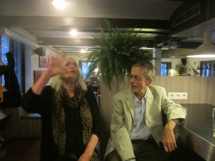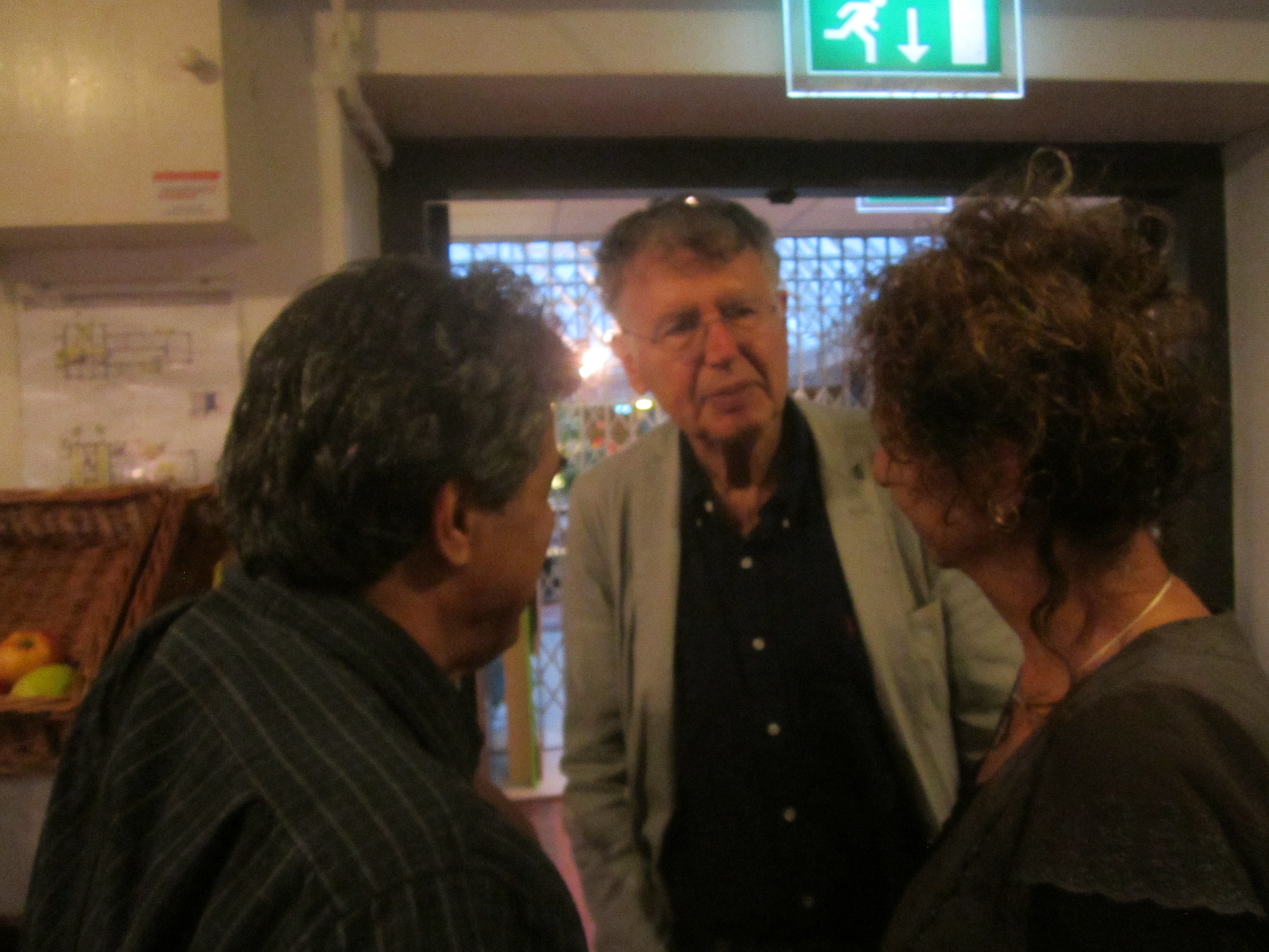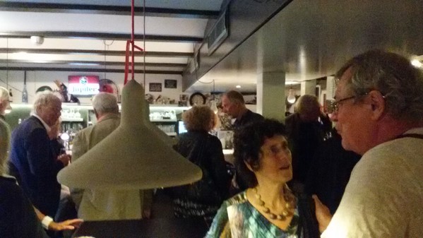1620. Don Linszen, Richard de Mulder en Liesbeth Sevenhuijsen na de borrel in Arti |